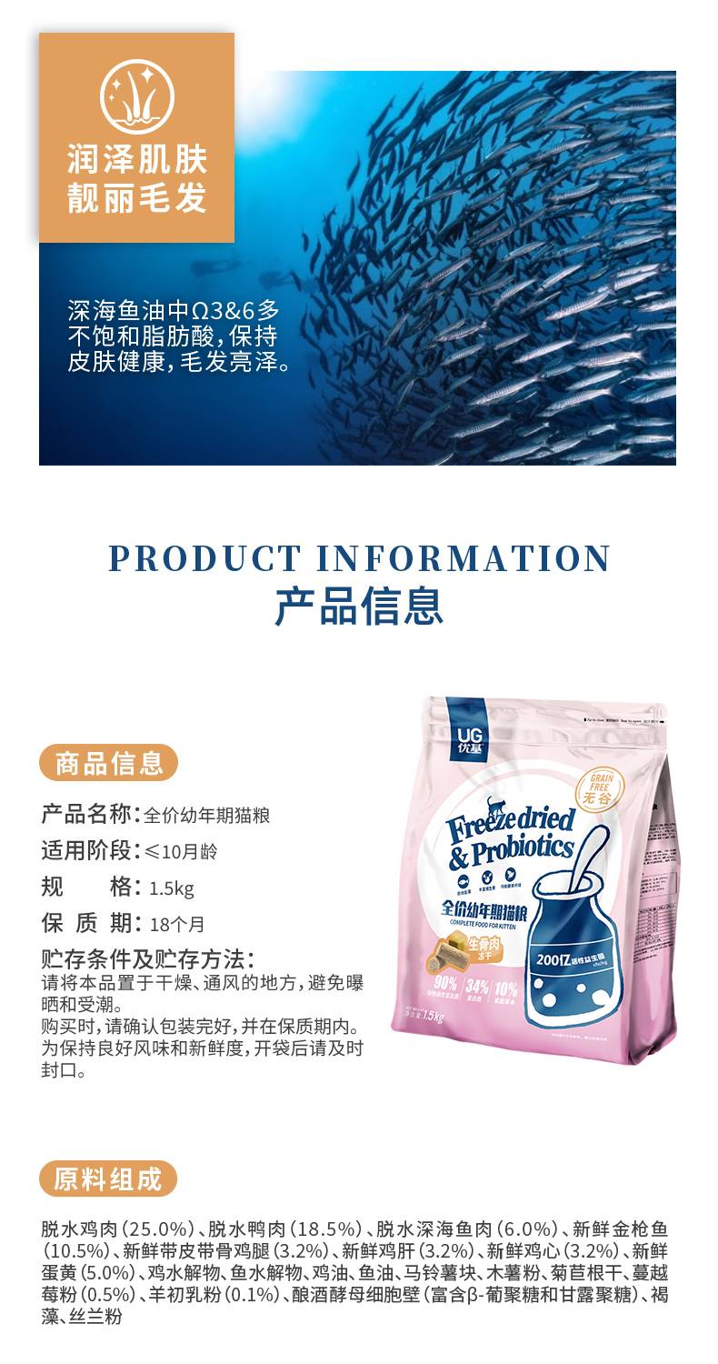自营 优基 生骨肉蛋黄冻干 幼猫粮1.5kg(仅线下)