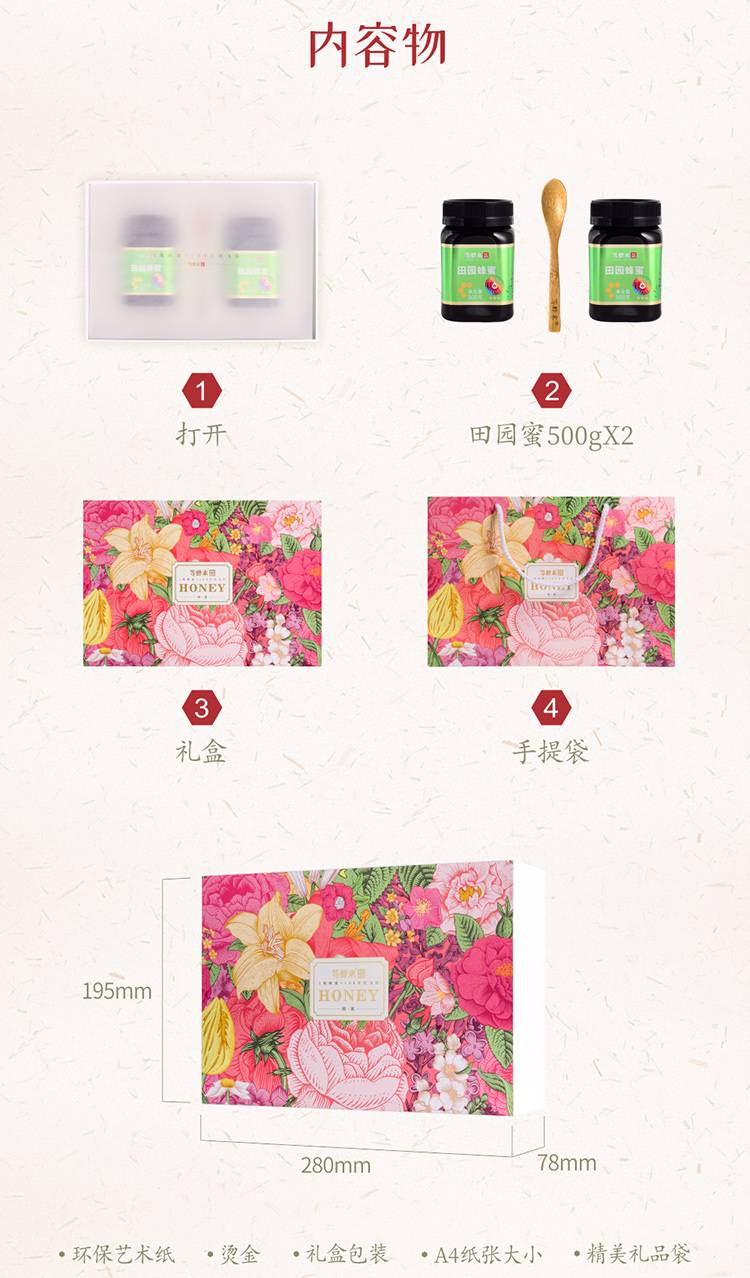 自营 等蜂来 田园蜂蜜 繁花礼盒装 500gx2