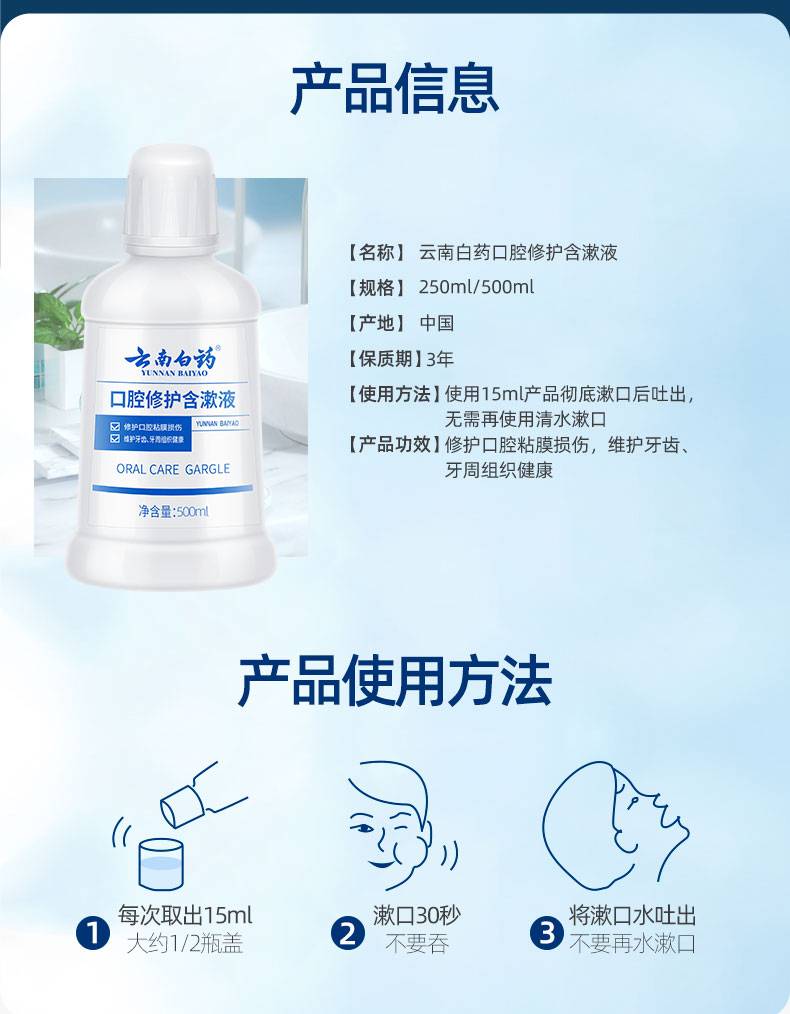 云南白药口腔修护含漱液 冰柠薄荷250ml 自营