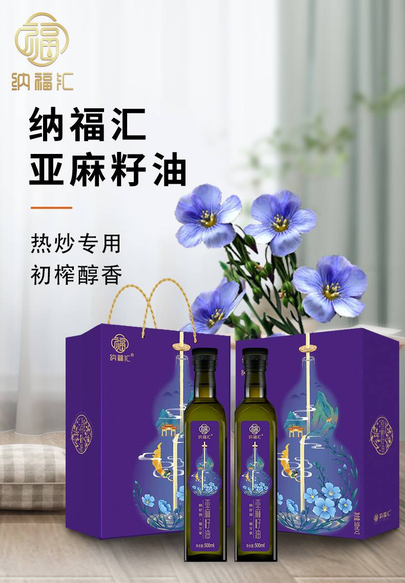 纳福汇冷榨亚麻籽油礼盒500ml*2 自营