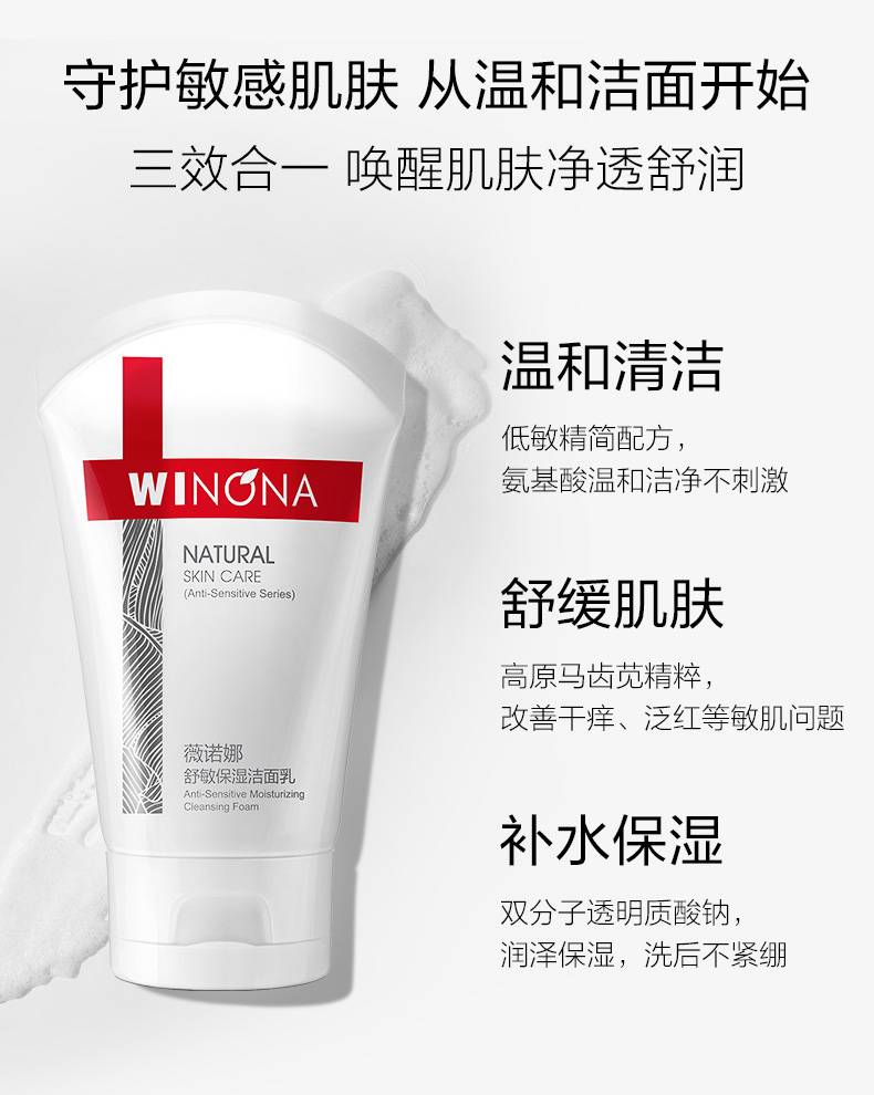 薇诺娜 舒敏保湿洗面乳 80g 不含皂基弱酸性温和清洁 敏感肌清洁