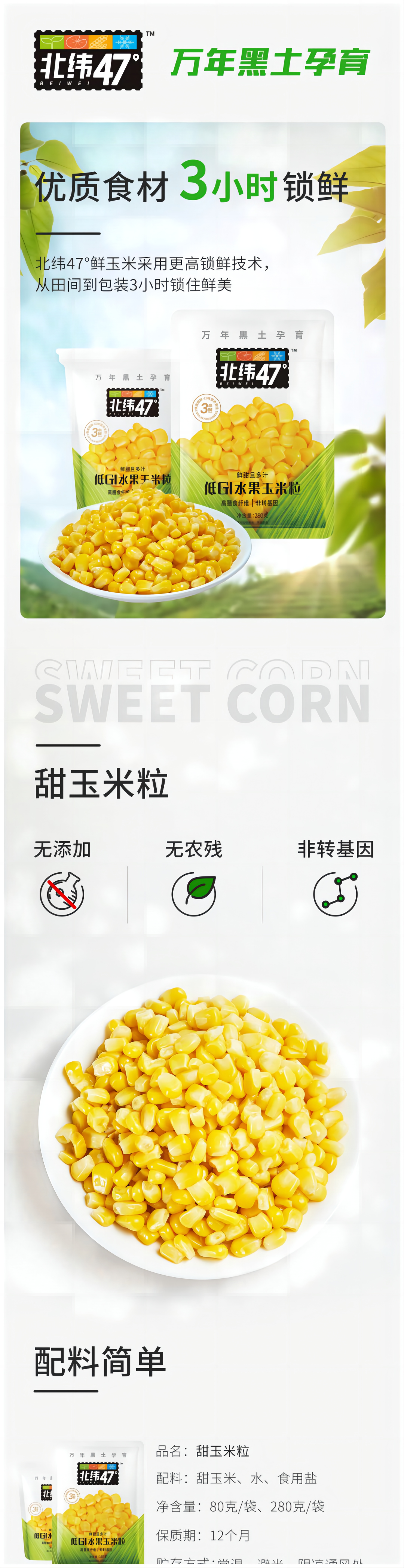 北纬47度 即食水果玉米粒 80g*10袋 自营