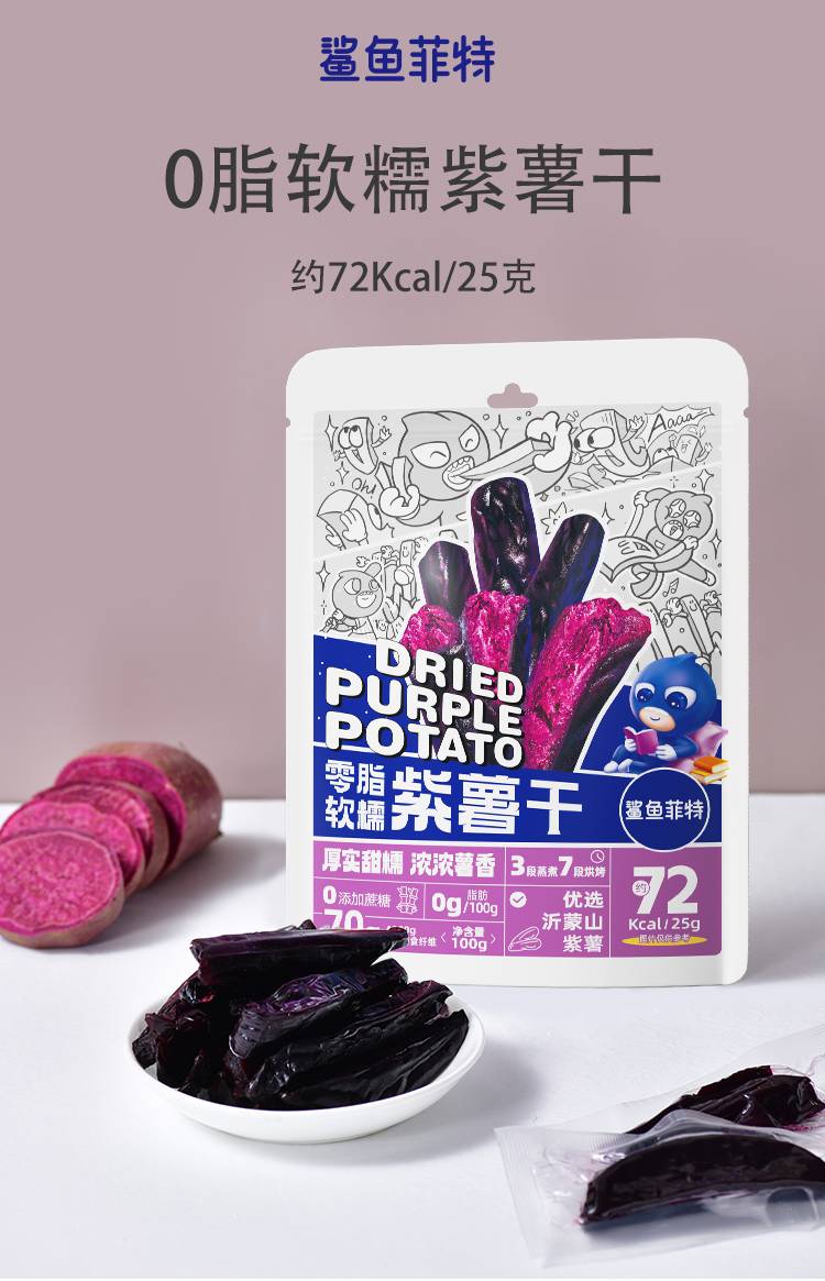 鲨鱼菲特 【100g0脂软糯紫薯干*5】500g