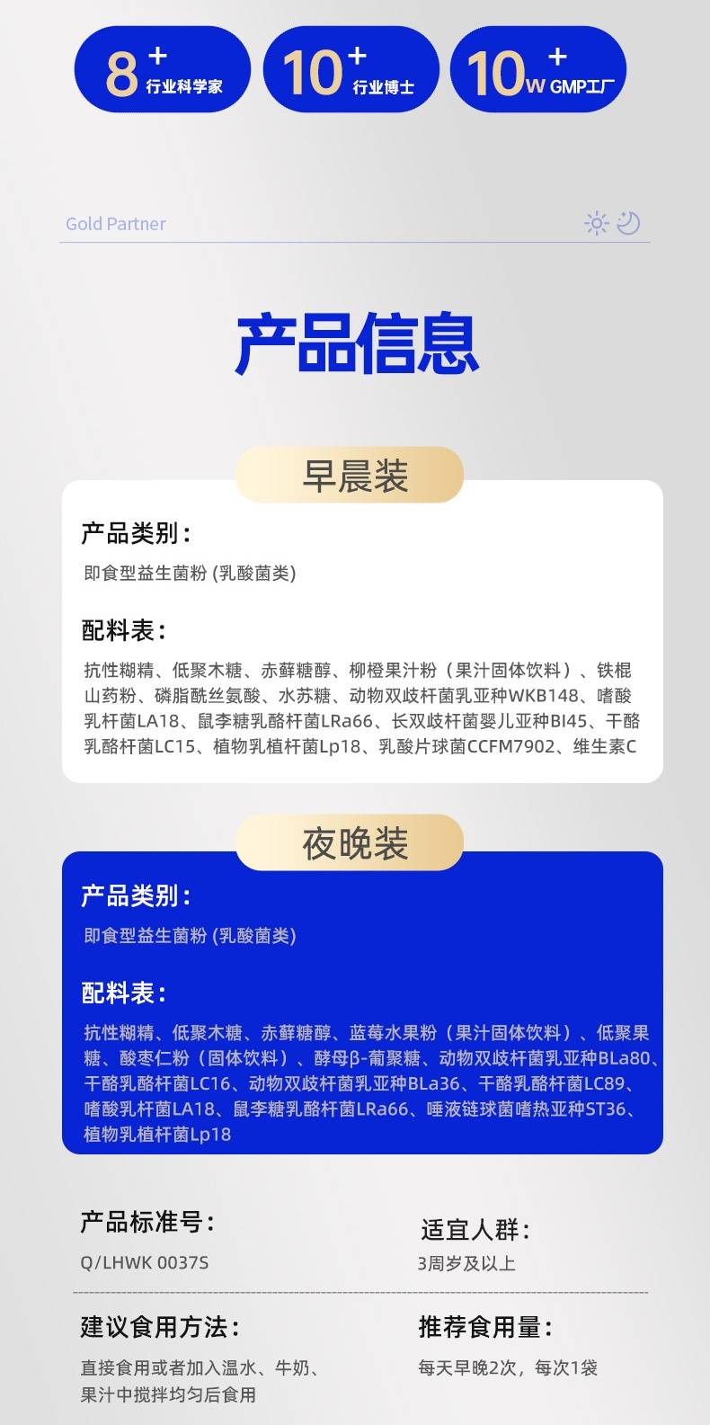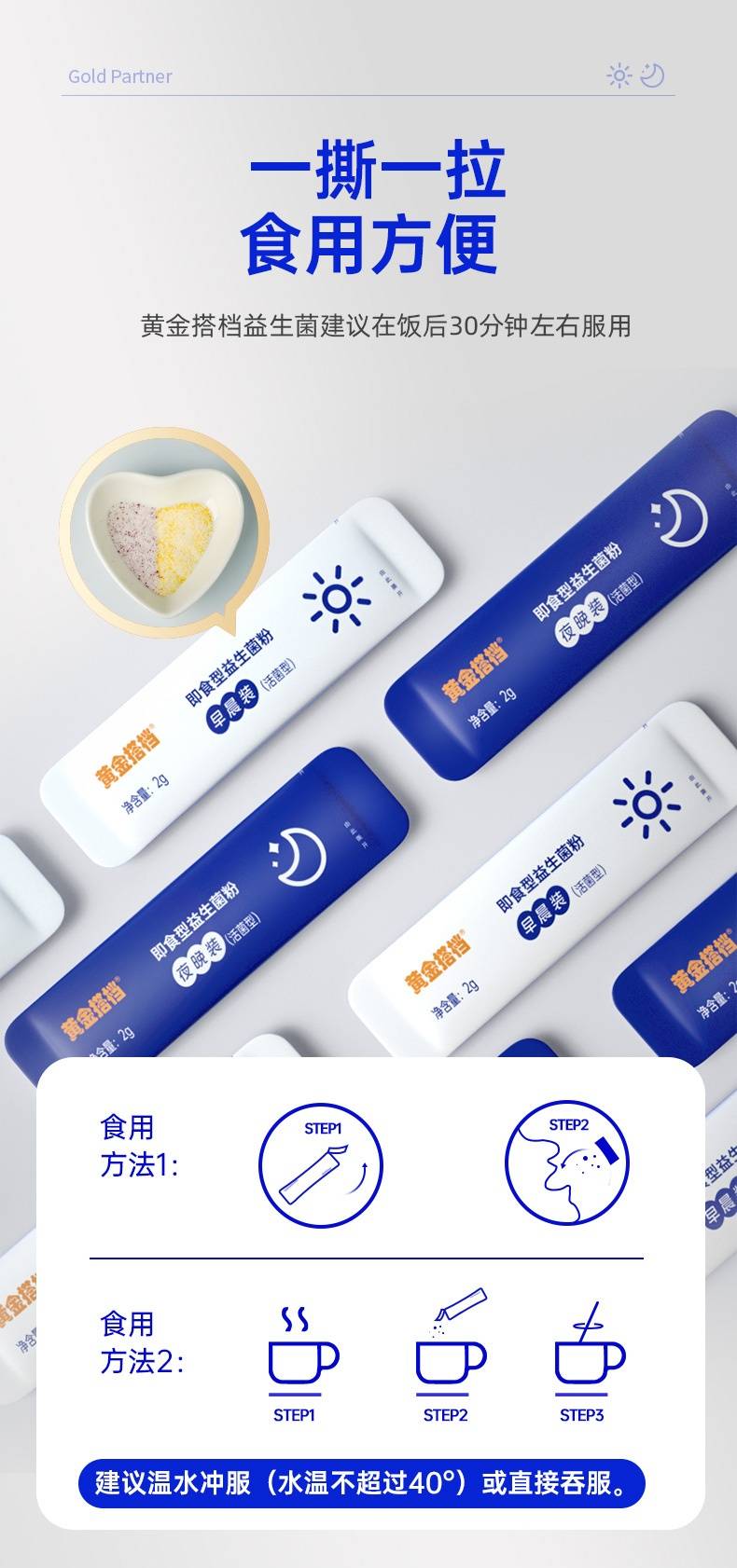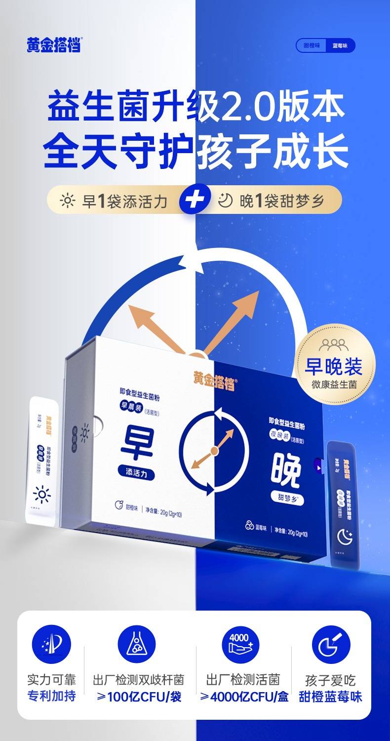 黄金搭档 早晚即食型益生菌粉2g*20条(盒)*3盒