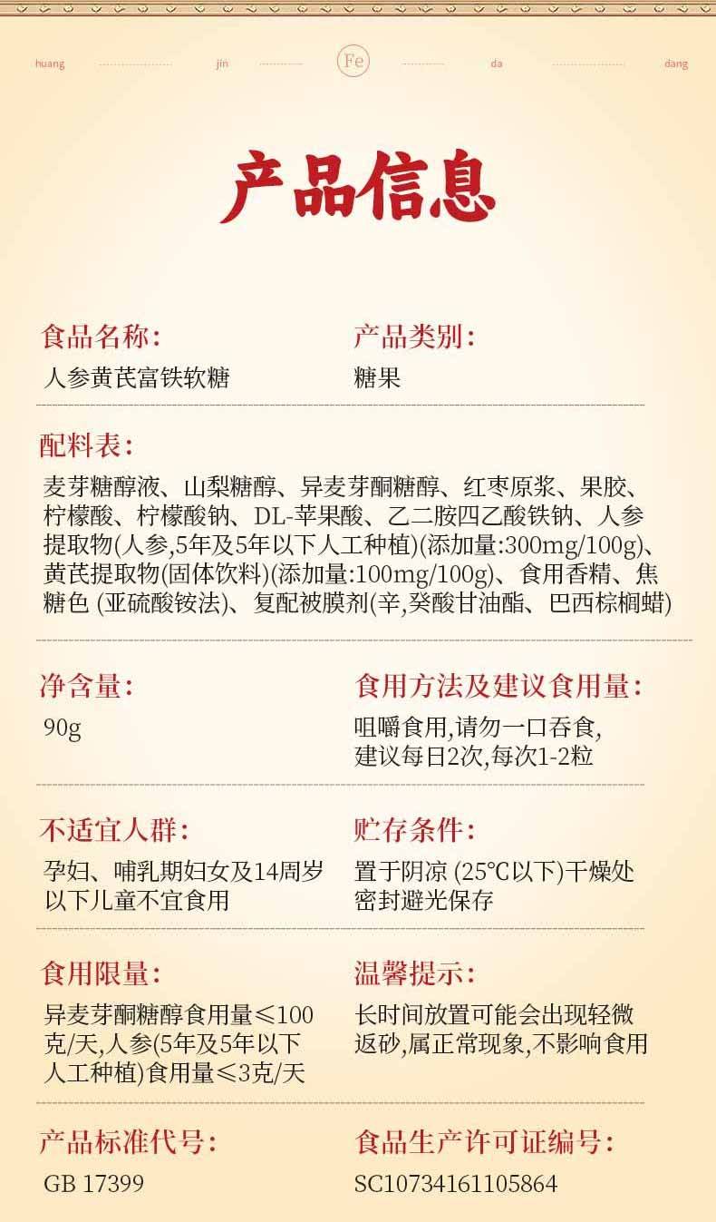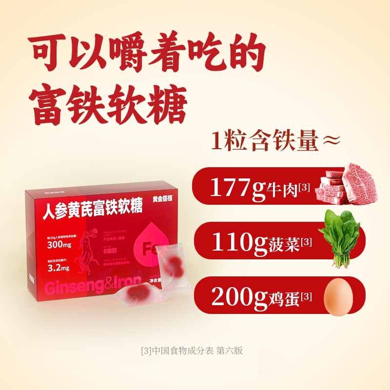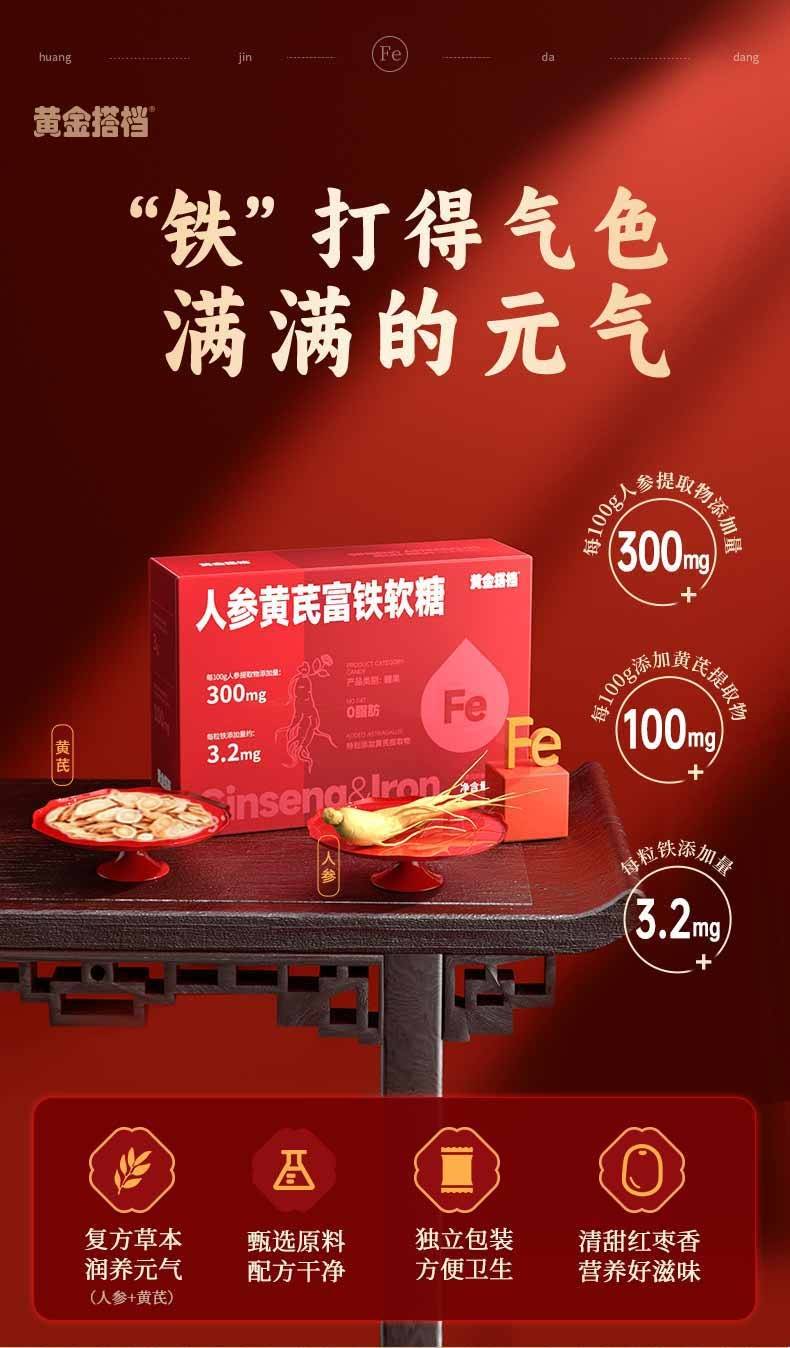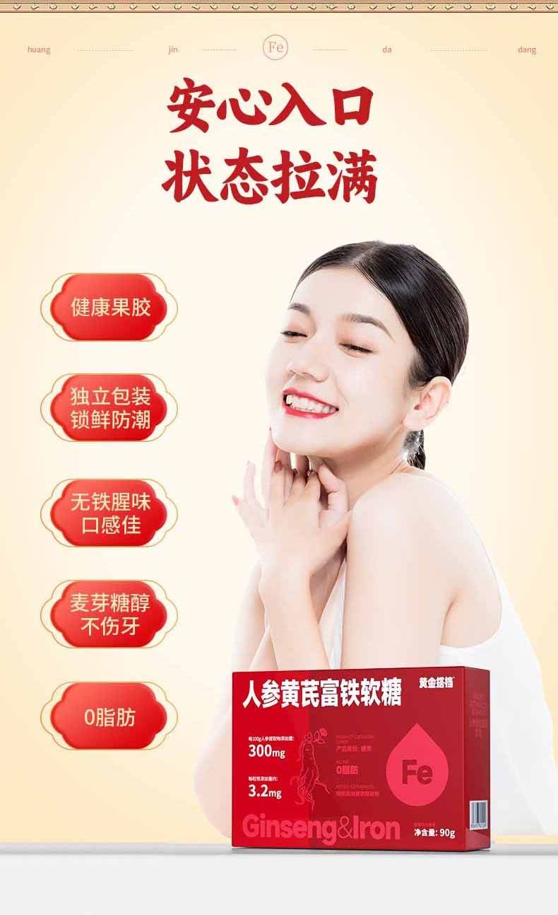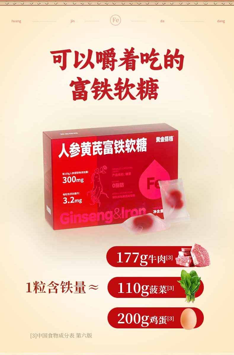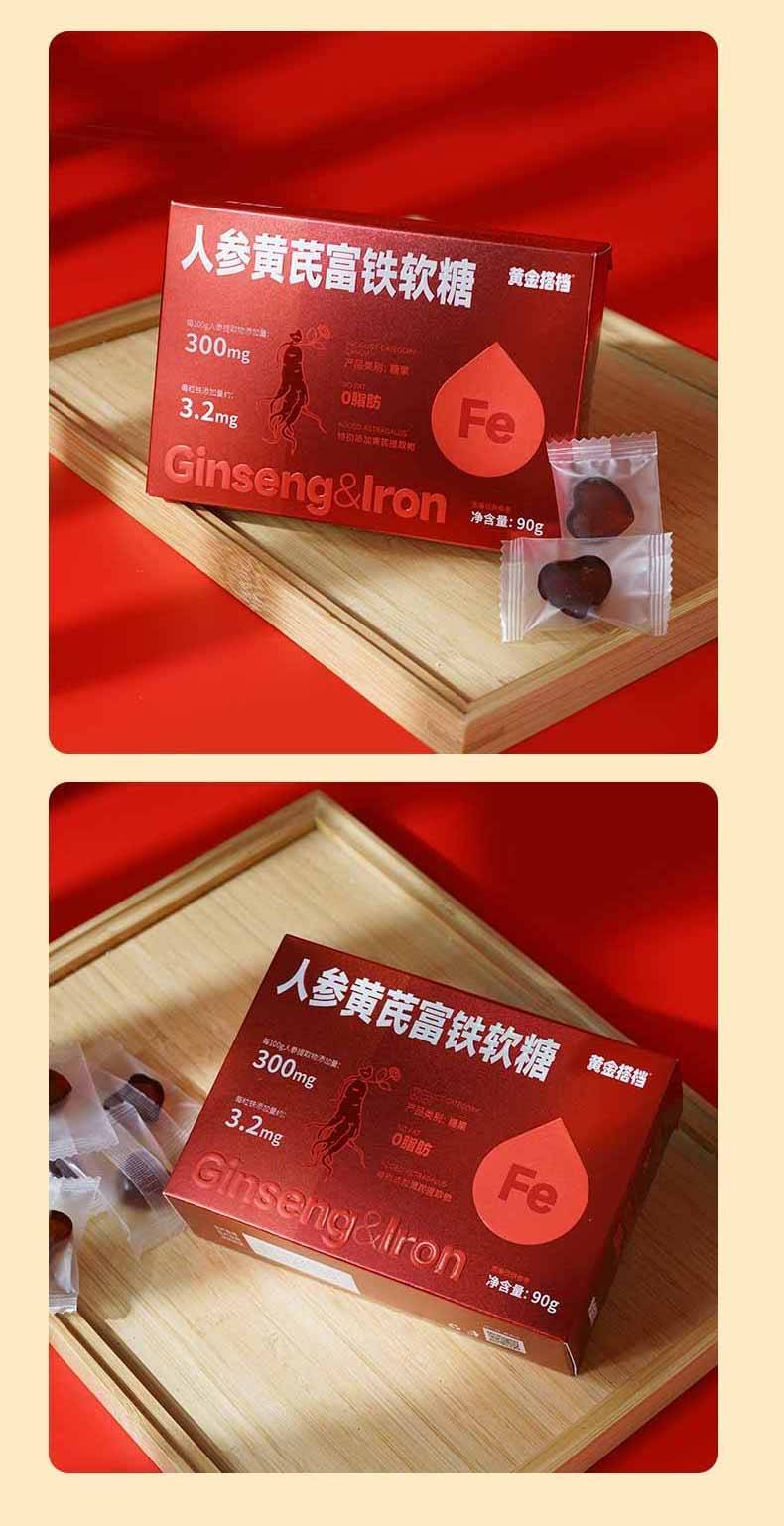 黄金搭档 人参黄芪富铁软糖30粒*3盒 自营