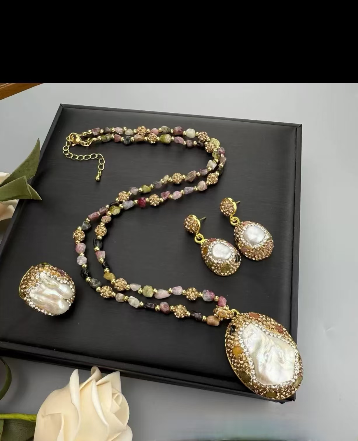 天然淡水珍珠碧玺套